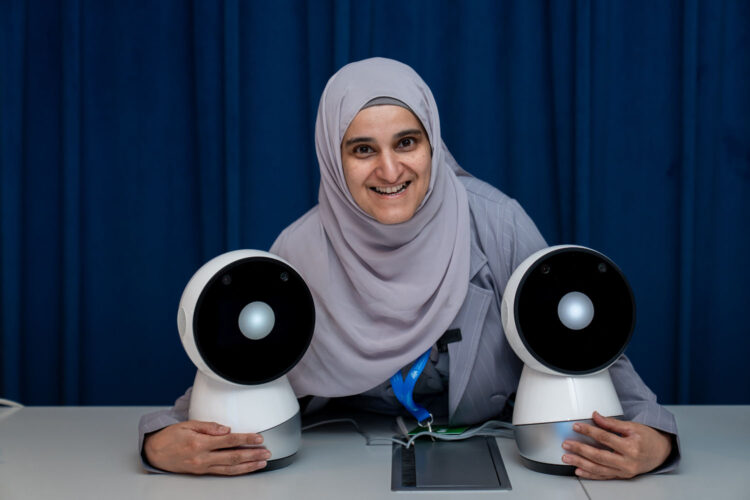 Sharifa Alghowinem, Research Scientist at the MIT Media Lab, with two Jibos